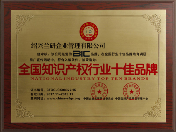 15年的誠信服務 打造紹興知識產權權威品牌